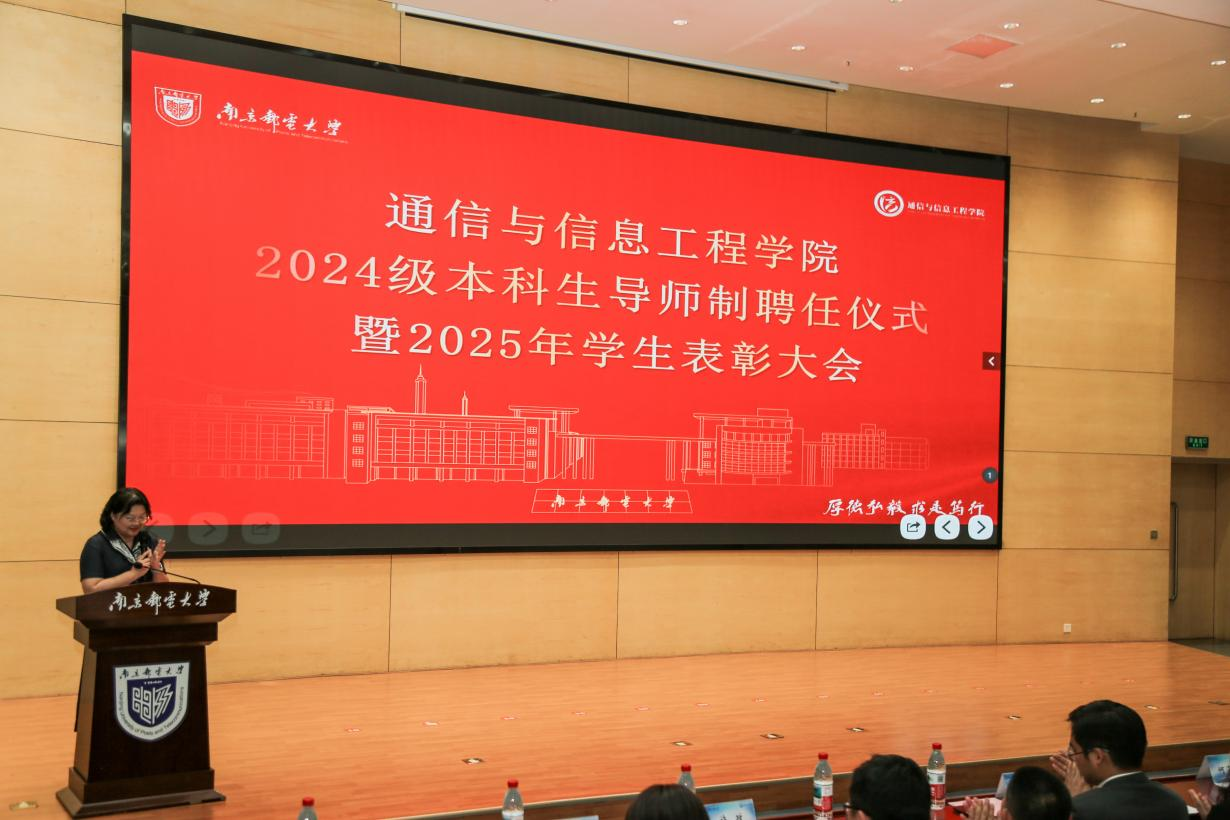 2025年5月26日下午,南京邮电大学仙林校区图书馆四楼运满满报告厅内,通信与信息工程学院 2024 级本科生导师制聘任仪式暨 2025年学生表彰大会、“万象城AWC(中国)科技奖学金”颁奖仪式隆重举行。此次活动汇聚了高校与企业的力量,共同为人才培养助力。