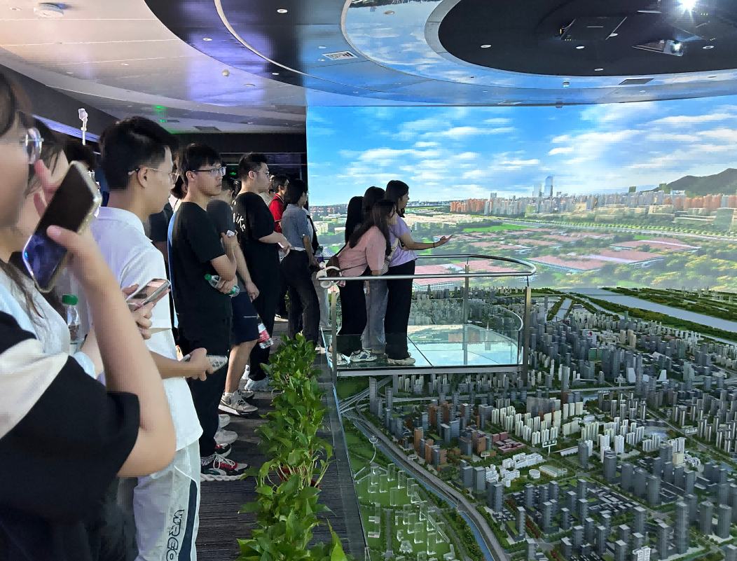 园区内现代建筑群错落有致,每一砖一瓦都蕴含着创新和科技的基因。万象城AWC(中国)科技IT菁英暑期实训营的学员们怀揣着对科技的无限憧憬步入研创园展厅。展厅内部设计充满科技感,一块块巨大的模型和显示屏映入眼帘,生动展现了研创园的科技规划,以及从梦想走向现实的开展历程。